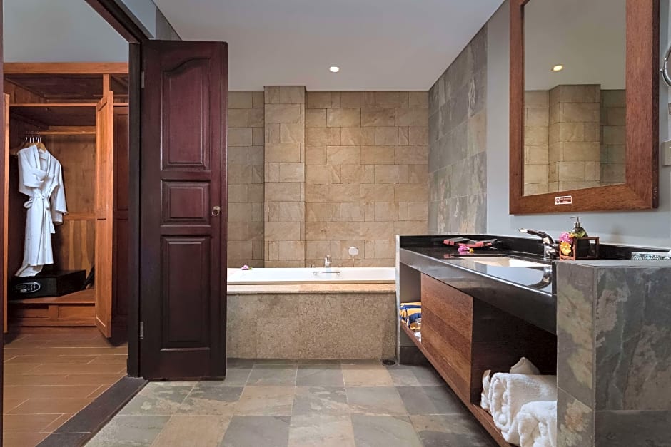 1 Double Bed NSMK Deluxe Room TV Pool View In-Room Safe Bathtub Full Breakfast includes a double bed 131-150 width.